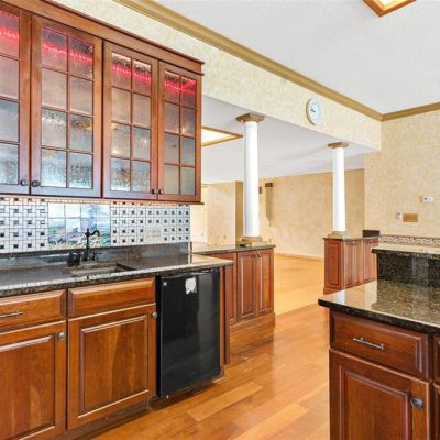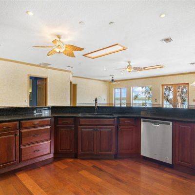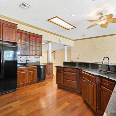 Built-in Features, Cathedral Ceiling(s), Ceiling Fan(s), Chair Rail, Eating Space In Kitchen, High Ceilings, Kitchen/Family Room Combo, Open Floorplan, Skylight(s), Solid Wood Cabinets, Stone Counters, Vaulted Ceiling(s), Walk-In Closet(s), Wet Bar, Window Treatments