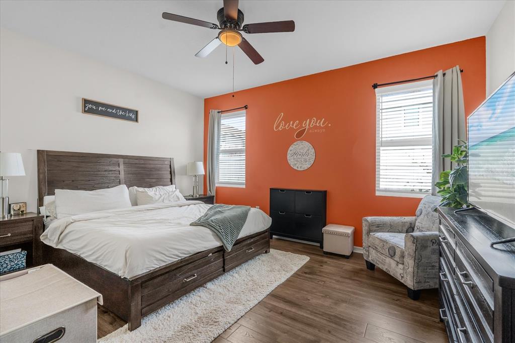 Ceiling Fan(s), Eating Space In Kitchen, High Ceilings, Open Floorplan, Walk-In Closet(s), Window Treatments