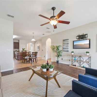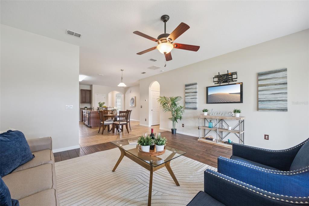 Ceiling Fan(s), Eating Space In Kitchen, High Ceilings, Kitchen/Family Room Combo, Open Floorplan, Primary Bedroom Main Floor, Solid Wood Cabinets, Split Bedroom, Stone Counters