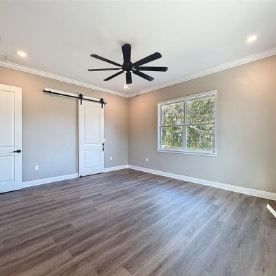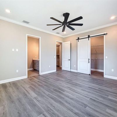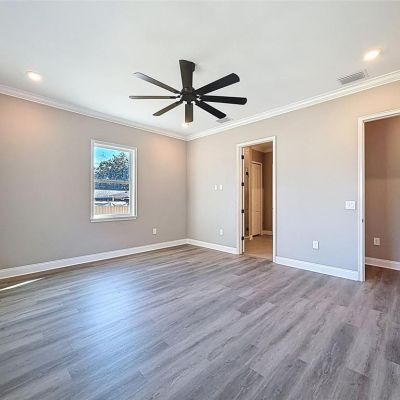 Ceiling Fan(s), Crown Molding, High Ceilings, Kitchen/Family Room Combo, Open Floorplan, Solid Wood Cabinets, Stone Counters, Vaulted Ceiling(s), Walk-In Closet(s)