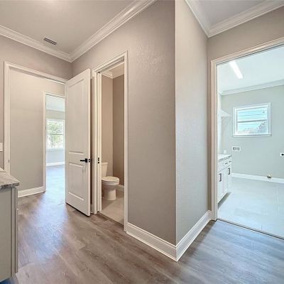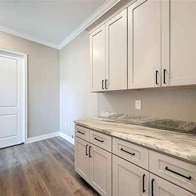 Ceiling Fan(s), Crown Molding, High Ceilings, Kitchen/Family Room Combo, Open Floorplan, Solid Wood Cabinets, Stone Counters, Vaulted Ceiling(s), Walk-In Closet(s)