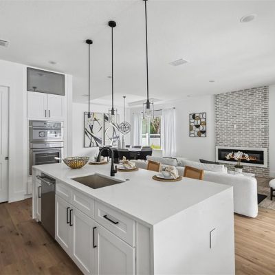 High Ceilings, Kitchen/Family Room Combo, Living Room/Dining Room Combo, Open Floorplan, PrimaryBedroom Upstairs, Smart Home, Solid Surface Counters, Thermostat, Walk-In Closet(s)