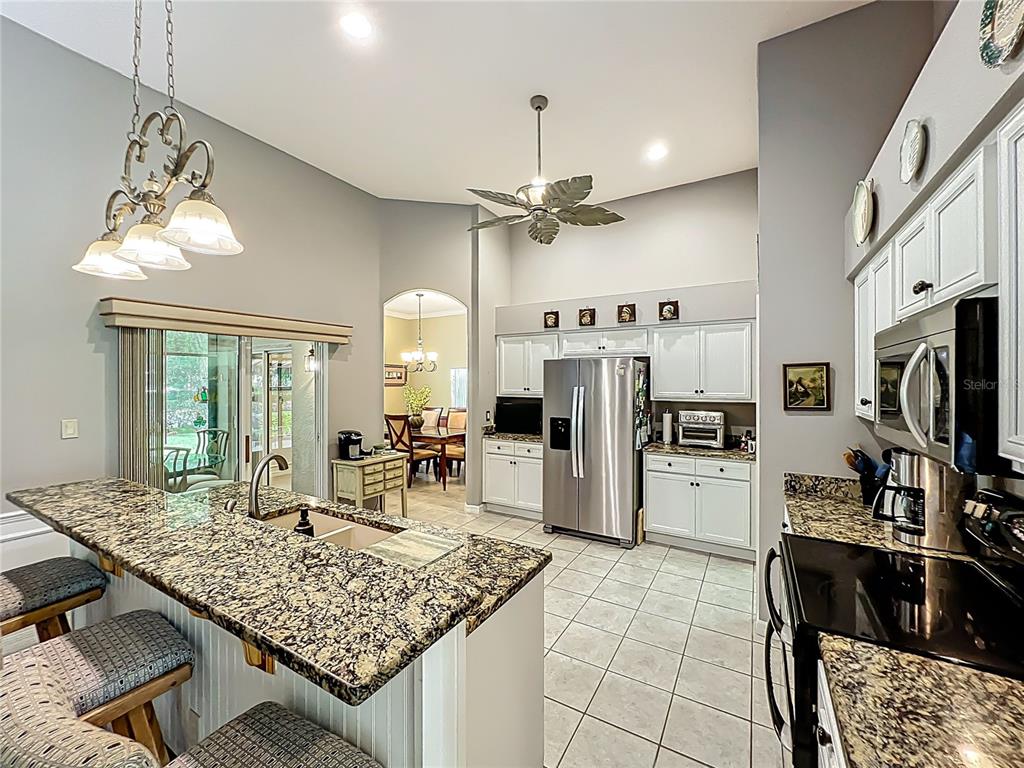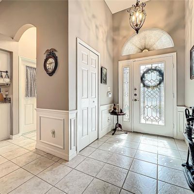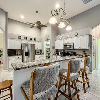Ceiling Fan(s), Chair Rail, Crown Molding, Eating Space In Kitchen, High Ceilings, Open Floorplan, Solid Surface Counters, Solid Wood Cabinets, Split Bedroom, Stone Counters, Thermostat, Walk-In Closet(s), Wet Bar, Window Treatments