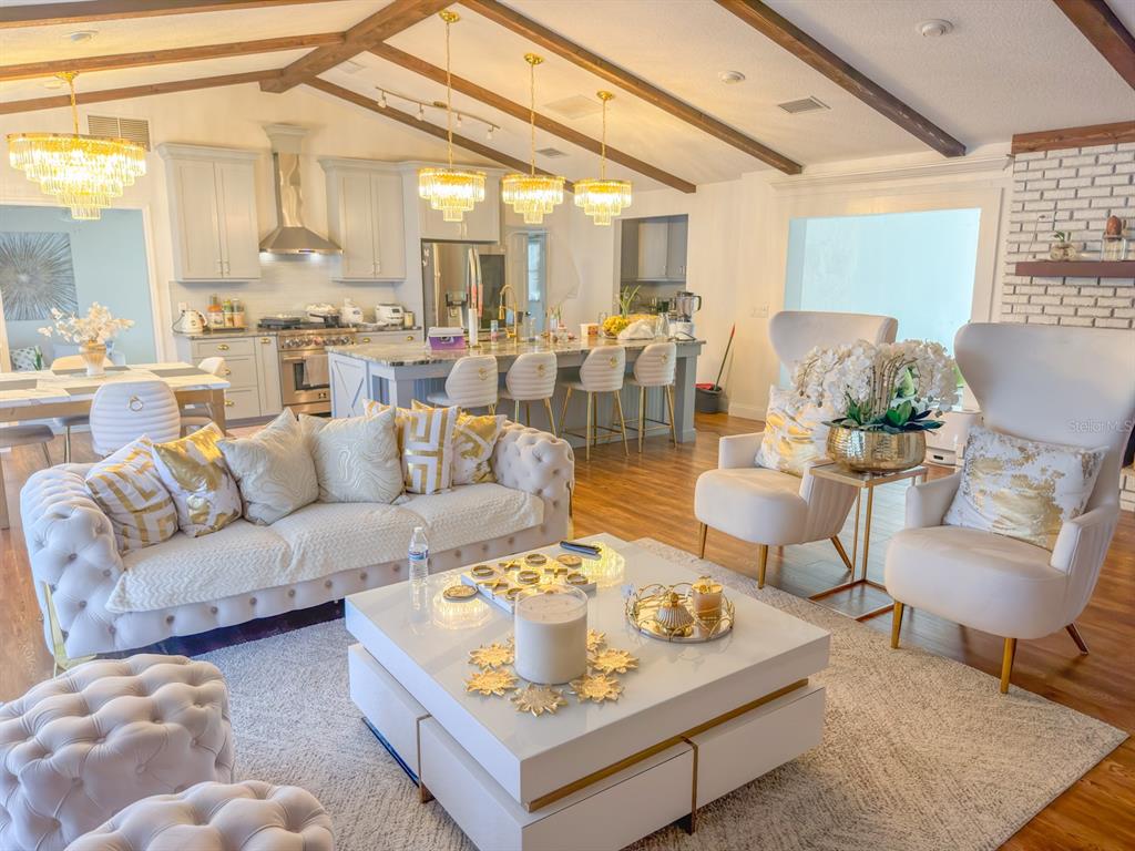 Ceiling Fan(s), Eating Space In Kitchen, High Ceilings, Kitchen/Family Room Combo, Living Room/Dining Room Combo, Primary Bedroom Main Floor, Stone Counters
