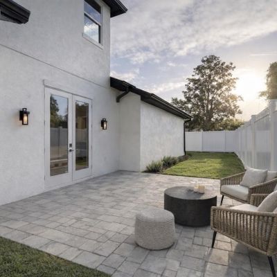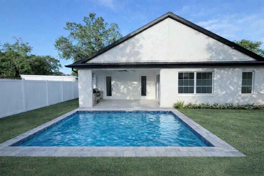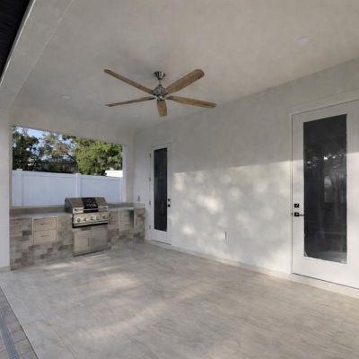 French Doors, Irrigation System, Lighting, Outdoor Grill, Outdoor Kitchen, Rain Gutters