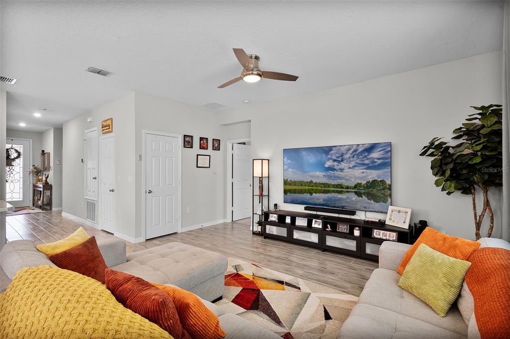 Ceiling Fan(s), High Ceilings, Living Room/Dining Room Combo, Open Floorplan, Primary Bedroom Main Floor, Thermostat, Walk-In Closet(s)