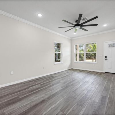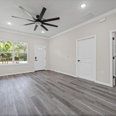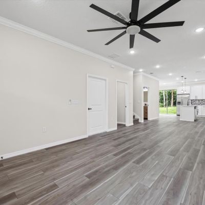 Ceiling Fan(s), Crown Molding, Kitchen/Family Room Combo, Living Room/Dining Room Combo, Open Floorplan, Primary Bedroom Main Floor, Stone Counters