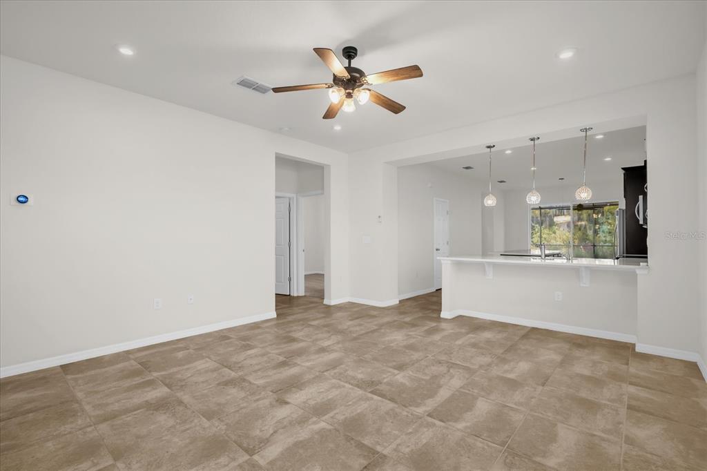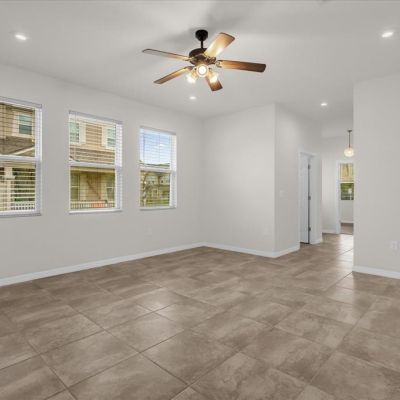 Ceiling Fan(s), High Ceilings, Open Floorplan, Solid Surface Counters, Solid Wood Cabinets, Stone Counters, Thermostat, Walk-In Closet(s), Window Treatments
