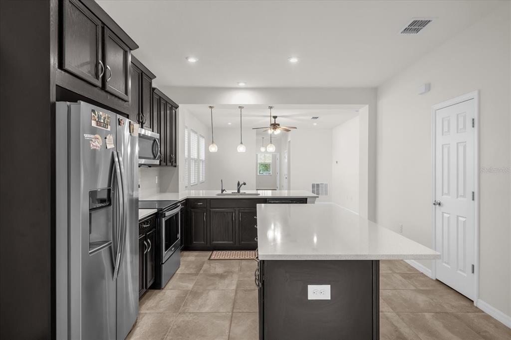 Ceiling Fan(s), High Ceilings, Open Floorplan, Solid Surface Counters, Solid Wood Cabinets, Stone Counters, Thermostat, Walk-In Closet(s), Window Treatments