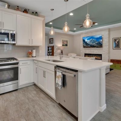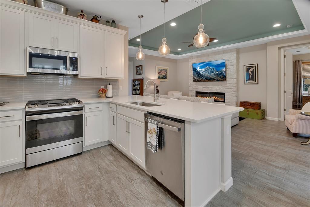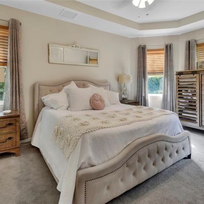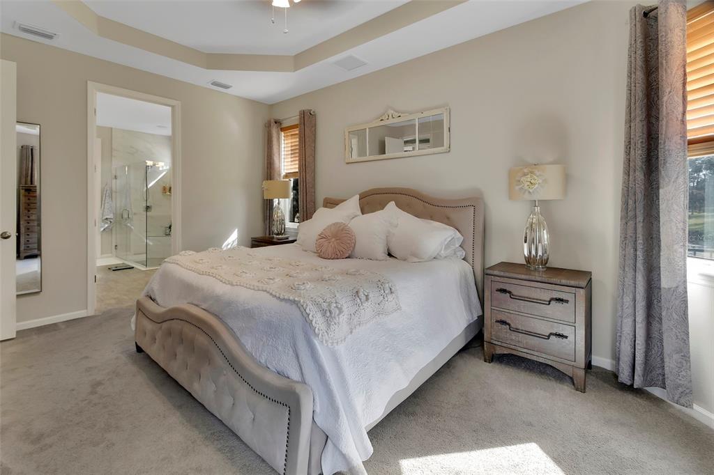 Cathedral Ceiling(s), Ceiling Fan(s), Eating Space In Kitchen, High Ceilings, Open Floorplan, Primary Bedroom Main Floor, Solid Surface Counters, Solid Wood Cabinets, Split Bedroom, Stone Counters, Tray Ceiling(s), Vaulted Ceiling(s), Walk-In Closet(s), Window Treatments