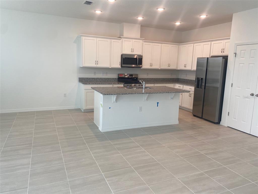 High Ceilings, Kitchen/Family Room Combo, Open Floorplan, Solid Surface Counters, Split Bedroom, Thermostat, Walk-In Closet(s)