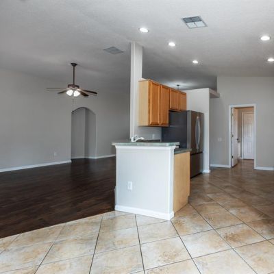 Ceiling Fan(s), Eating Space In Kitchen, High Ceilings, Kitchen/Family Room Combo, Living Room/Dining Room Combo, Open Floorplan, Primary Bedroom Main Floor, Thermostat, Walk-In Closet(s)