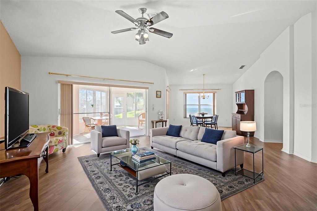 Ceiling Fan(s), Eating Space In Kitchen, High Ceilings, Thermostat, Vaulted Ceiling(s), Walk-In Closet(s), Window Treatments
