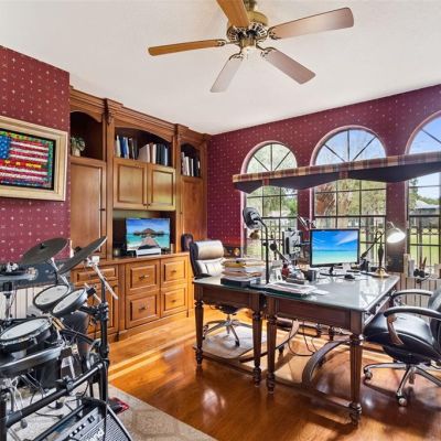 Built-in Features, Ceiling Fan(s), Central Vacuum, Crown Molding, Eating Space In Kitchen, High Ceilings, Kitchen/Family Room Combo, Primary Bedroom Main Floor, Stone Counters, Walk-In Closet(s), Wet Bar, Window Treatments