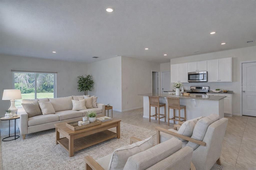 Eating Space In Kitchen, Kitchen/Family Room Combo, Living Room/Dining Room Combo, Open Floorplan, PrimaryBedroom Upstairs, Solid Surface Counters, Stone Counters, Walk-In Closet(s)
