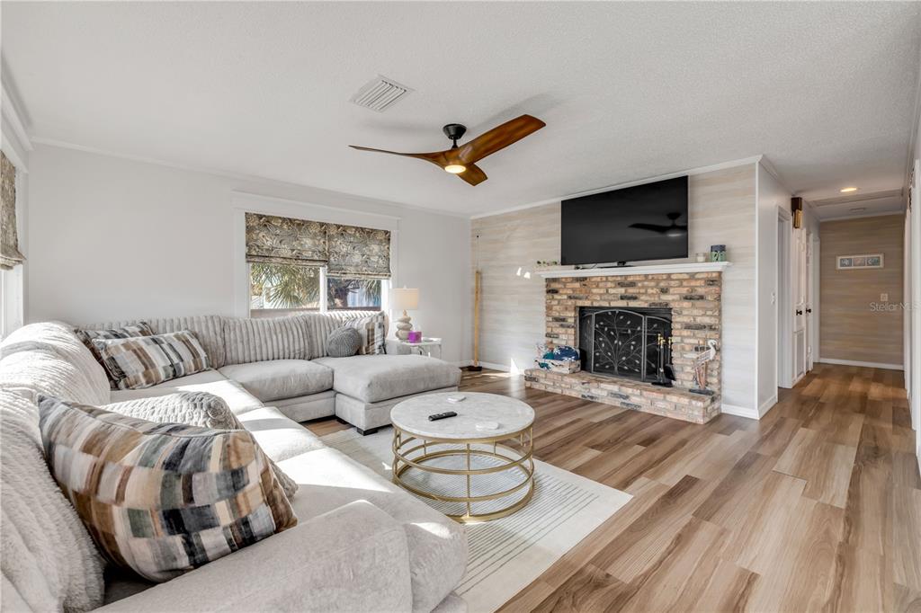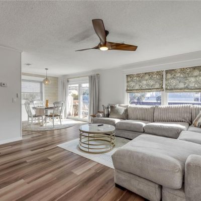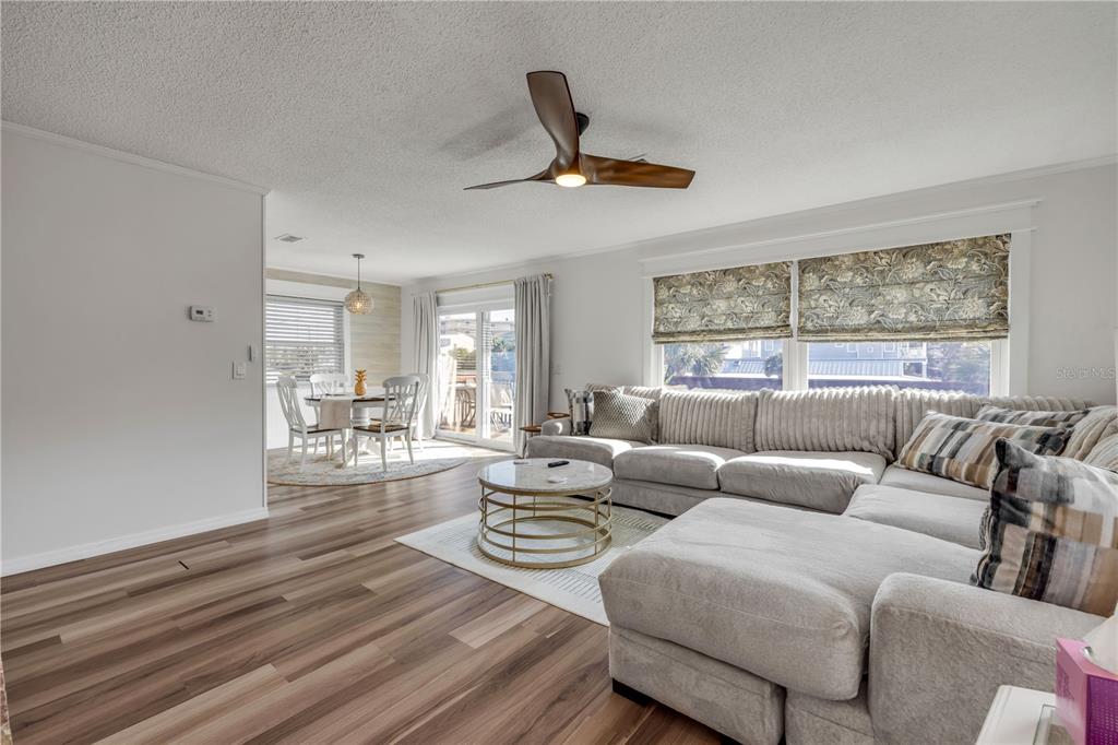 Ceiling Fan(s), Living Room/Dining Room Combo, Solid Surface Counters, Window Treatments