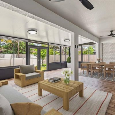 Irrigation System, Outdoor Kitchen, Rain Gutters, Sidewalk, Sliding Doors, Sprinkler Metered