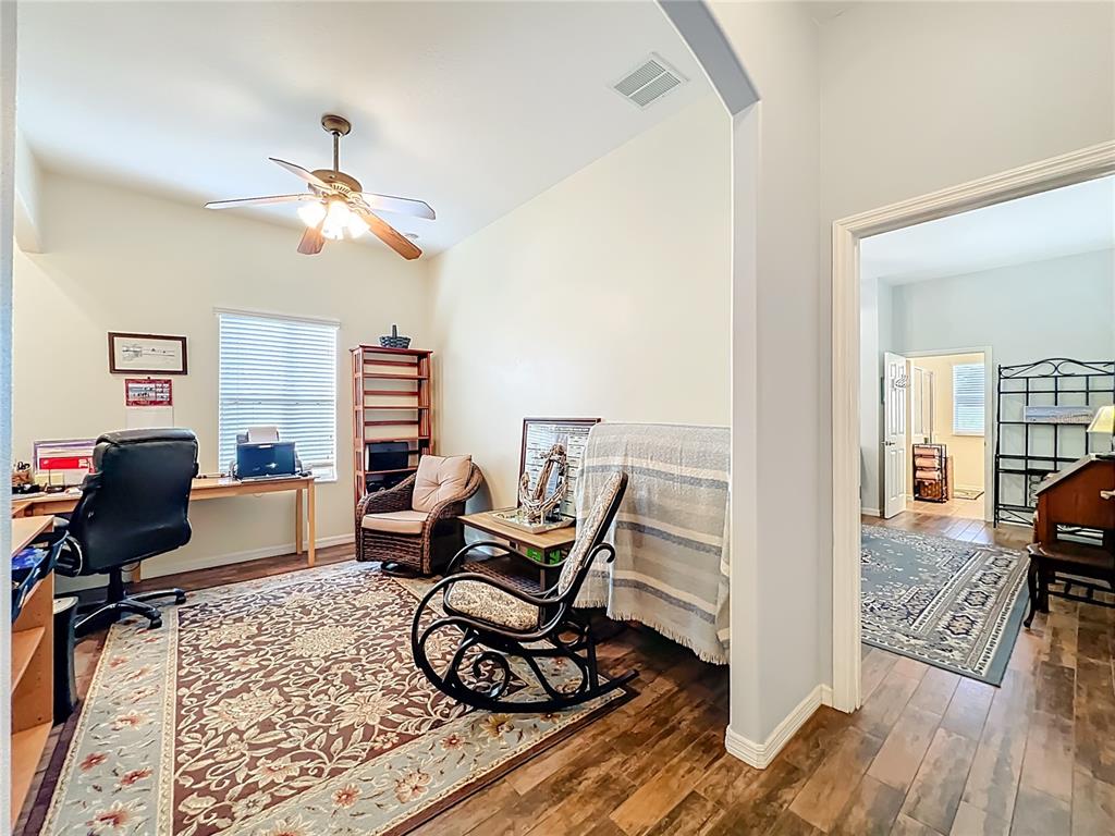 Ceiling Fan(s), High Ceilings, Open Floorplan, Stone Counters, Walk-In Closet(s), Window Treatments