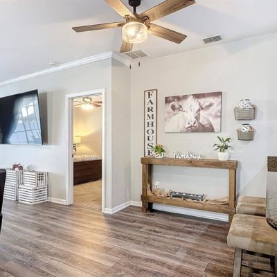 Open Floorplan, Primary Bedroom Main Floor, Solid Wood Cabinets, Stone Counters, Thermostat, Walk-In Closet(s), Window Treatments