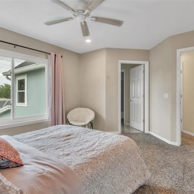 Ceiling Fan(s), Eating Space In Kitchen, High Ceilings, Primary Bedroom Main Floor, Solid Surface Counters, Solid Wood Cabinets, Split Bedroom, Walk-In Closet(s)