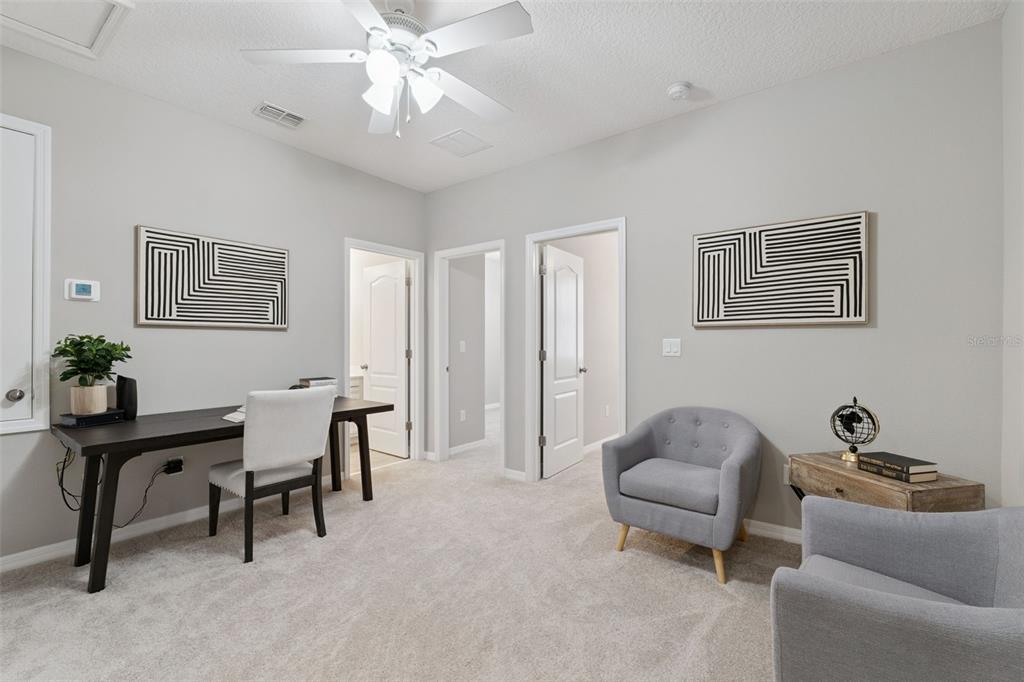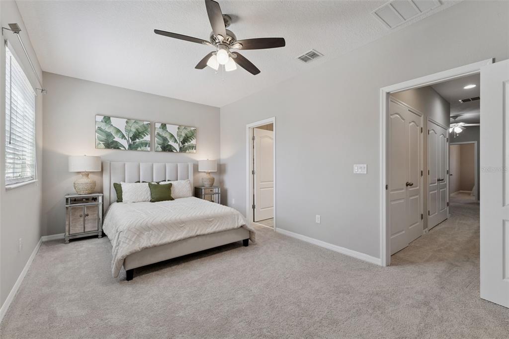 Ceiling Fan(s), Eating Space In Kitchen, High Ceilings, Open Floorplan, PrimaryBedroom Upstairs, Stone Counters, Walk-In Closet(s), Window Treatments