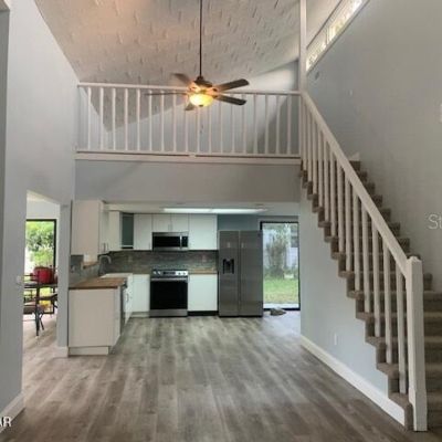 Ceiling Fan(s), High Ceilings, Living Room/Dining Room Combo, Open Floorplan, Primary Bedroom Main Floor, Solid Surface Counters, Vaulted Ceiling(s)