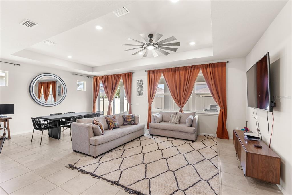 Ceiling Fan(s), Eating Space In Kitchen, High Ceilings, Kitchen/Family Room Combo, Living Room/Dining Room Combo