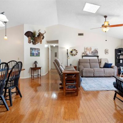 Cathedral Ceiling(s), Ceiling Fan(s), Eating Space In Kitchen, High Ceilings, Living Room/Dining Room Combo, Solid Wood Cabinets, Stone Counters