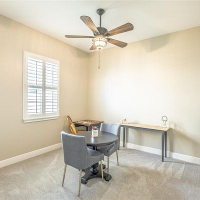 Ceiling Fan(s), Eating Space In Kitchen, High Ceilings, Kitchen/Family Room Combo, Open Floorplan, Primary Bedroom Main Floor, Solid Surface Counters, Thermostat, Tray Ceiling(s), Walk-In Closet(s), Window Treatments