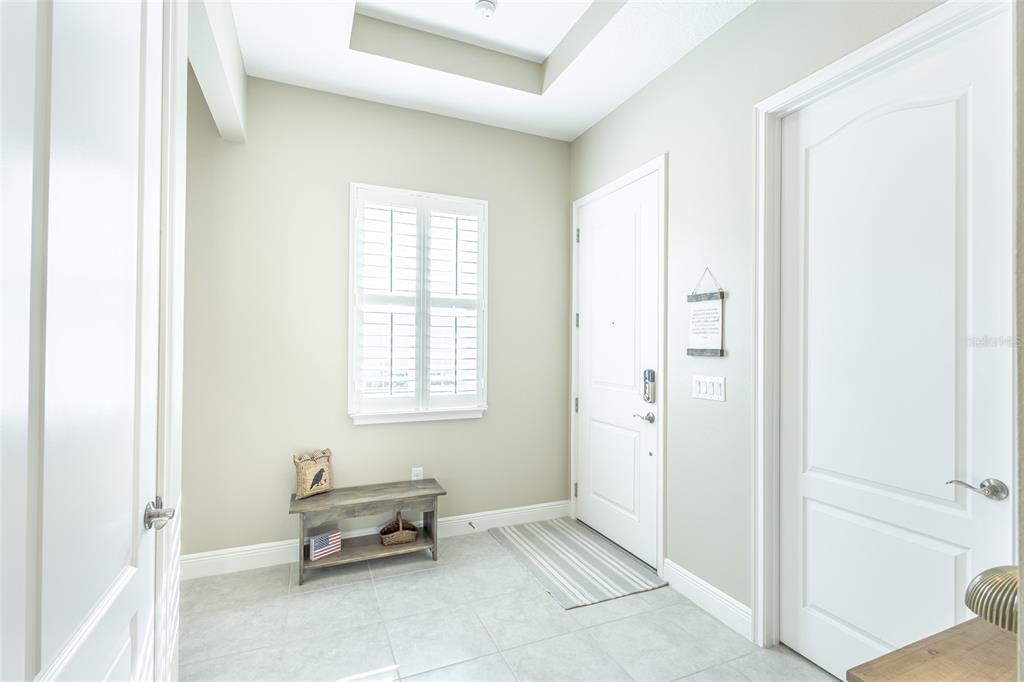Ceiling Fan(s), Eating Space In Kitchen, High Ceilings, Kitchen/Family Room Combo, Open Floorplan, Primary Bedroom Main Floor, Solid Surface Counters, Thermostat, Tray Ceiling(s), Walk-In Closet(s), Window Treatments