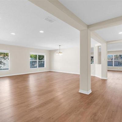 Crown Molding, Eating Space In Kitchen, Kitchen/Family Room Combo, Open Floorplan, Solid Surface Counters, Solid Wood Cabinets, Split Bedroom, Walk-In Closet(s)
