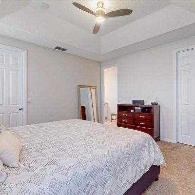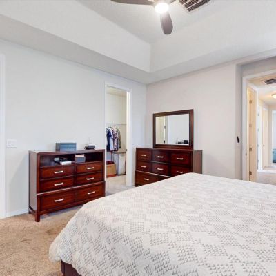 Ceiling Fan(s), Kitchen/Family Room Combo, Open Floorplan, PrimaryBedroom Upstairs, Solid Surface Counters, Thermostat, Tray Ceiling(s), Walk-In Closet(s)
