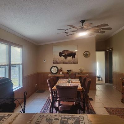 Ceiling Fan(s), Crown Molding, Eating Space In Kitchen, Window Treatments