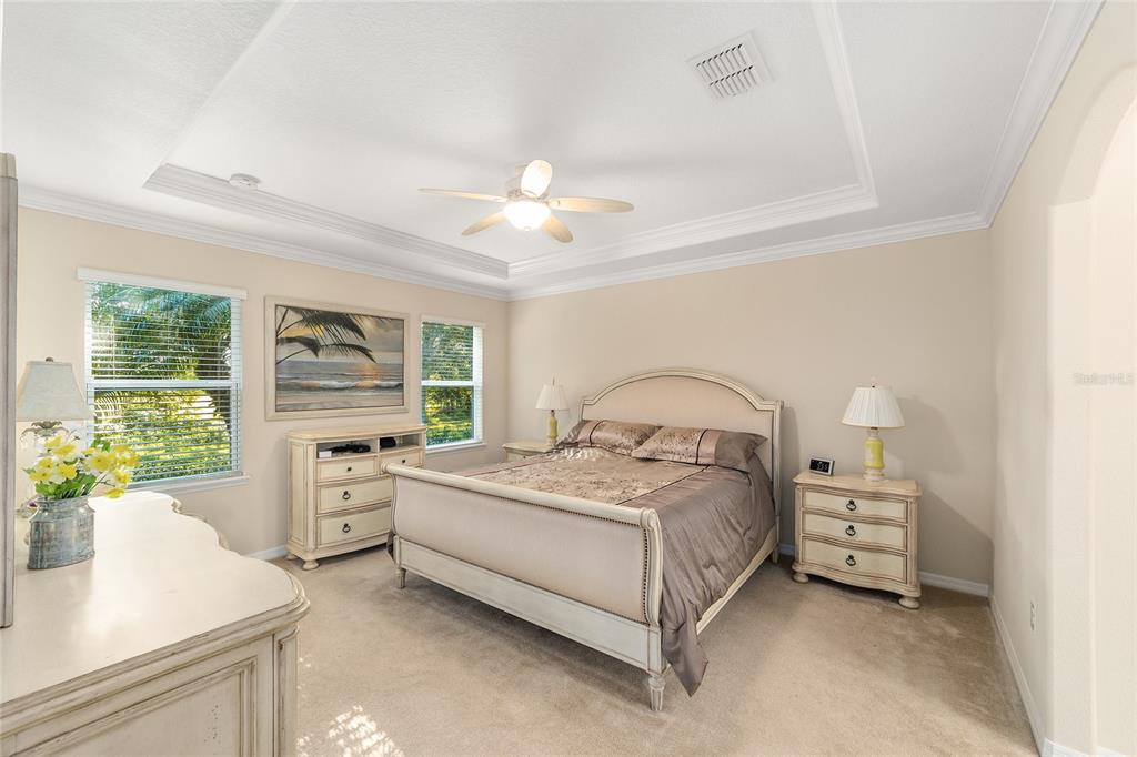 Crown Molding, Eating Space In Kitchen, Open Floorplan, Primary Bedroom Main Floor, Solid Surface Counters, Split Bedroom, Vaulted Ceiling(s), Walk-In Closet(s), Window Treatments