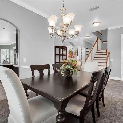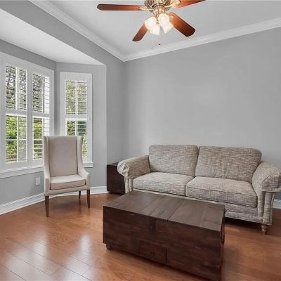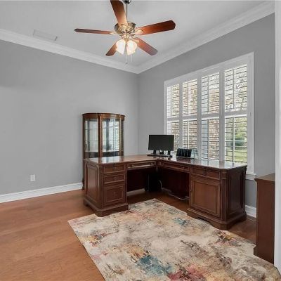 Ceiling Fan(s), Crown Molding, Eating Space In Kitchen, High Ceilings, Solid Surface Counters