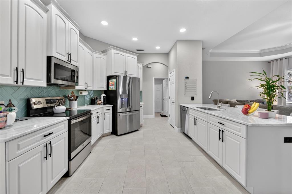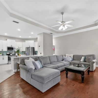 Cathedral Ceiling(s), Ceiling Fan(s), Crown Molding, Eating Space In Kitchen, High Ceilings, Kitchen/Family Room Combo, Living Room/Dining Room Combo, Open Floorplan, Split Bedroom, Stone Counters, Tray Ceiling(s), Vaulted Ceiling(s), Walk-In Closet(s)