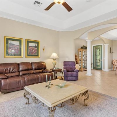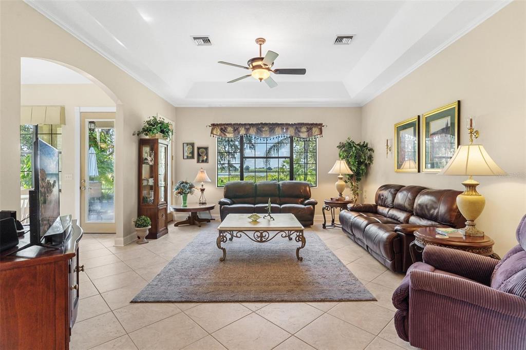 Ceiling Fan(s), Crown Molding, Eating Space In Kitchen, High Ceilings, Open Floorplan, Solid Wood Cabinets, Split Bedroom, Stone Counters, Walk-In Closet(s), Window Treatments