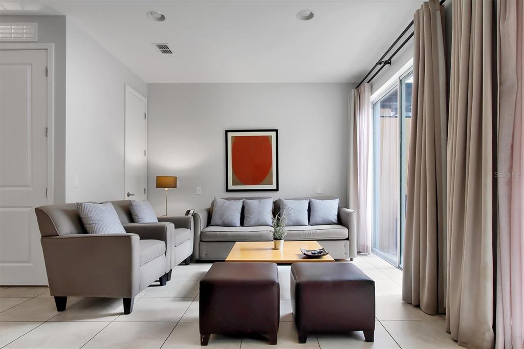 Living Room/Dining Room Combo, Open Floorplan, PrimaryBedroom Upstairs, Stone Counters, Window Treatments