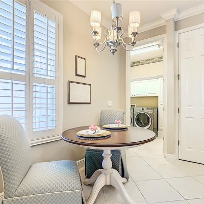 Built-in Features, Ceiling Fan(s), Crown Molding, Eating Space In Kitchen, Living Room/Dining Room Combo, Solid Wood Cabinets, Split Bedroom, Stone Counters, Vaulted Ceiling(s), Walk-In Closet(s), Window Treatments