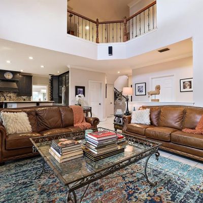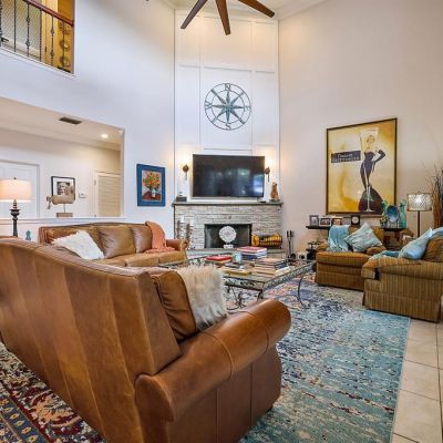 Cathedral Ceiling(s), Ceiling Fan(s), Coffered Ceiling(s), Crown Molding, Eating Space In Kitchen, High Ceilings, Kitchen/Family Room Combo, Living Room/Dining Room Combo, Open Floorplan, PrimaryBedroom Upstairs, Solid Surface Counters, Solid Wood Cabinets, Stone Counters, Tray Ceiling(s), Vaulted Ceiling(s), Walk-In Closet(s)