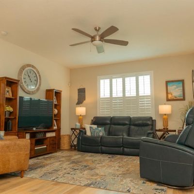 Ceiling Fan(s), Kitchen/Family Room Combo, Open Floorplan, Solid Surface Counters, Walk-In Closet(s)