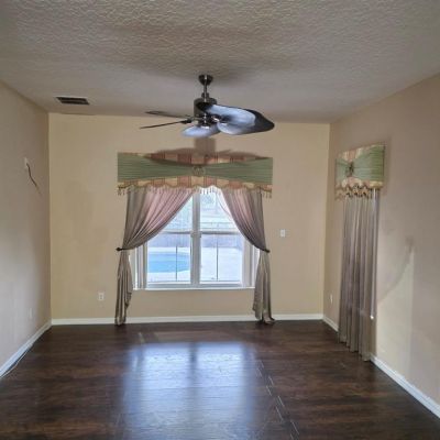 Ceiling Fan(s), High Ceilings, Living Room/Dining Room Combo, Primary Bedroom Main Floor, Solid Wood Cabinets, Thermostat, Walk-In Closet(s), Window Treatments