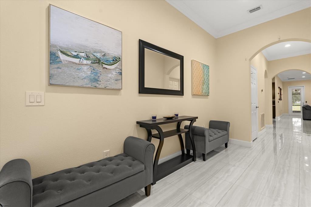 Ceiling Fan(s), Crown Molding, Open Floorplan, Smart Home, Solid Wood Cabinets, Stone Counters, Walk-In Closet(s), Window Treatments