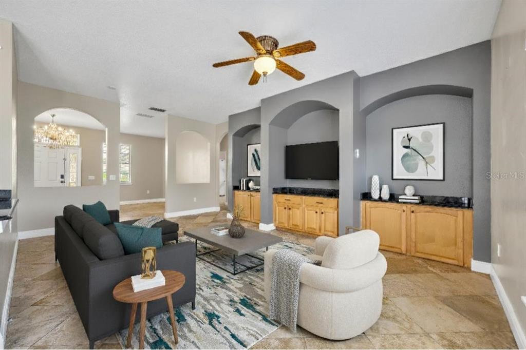 Built-in Features, Ceiling Fan(s), Eating Space In Kitchen, Kitchen/Family Room Combo, Living Room/Dining Room Combo, Open Floorplan, Solid Surface Counters, Solid Wood Cabinets, Thermostat, Walk-In Closet(s)