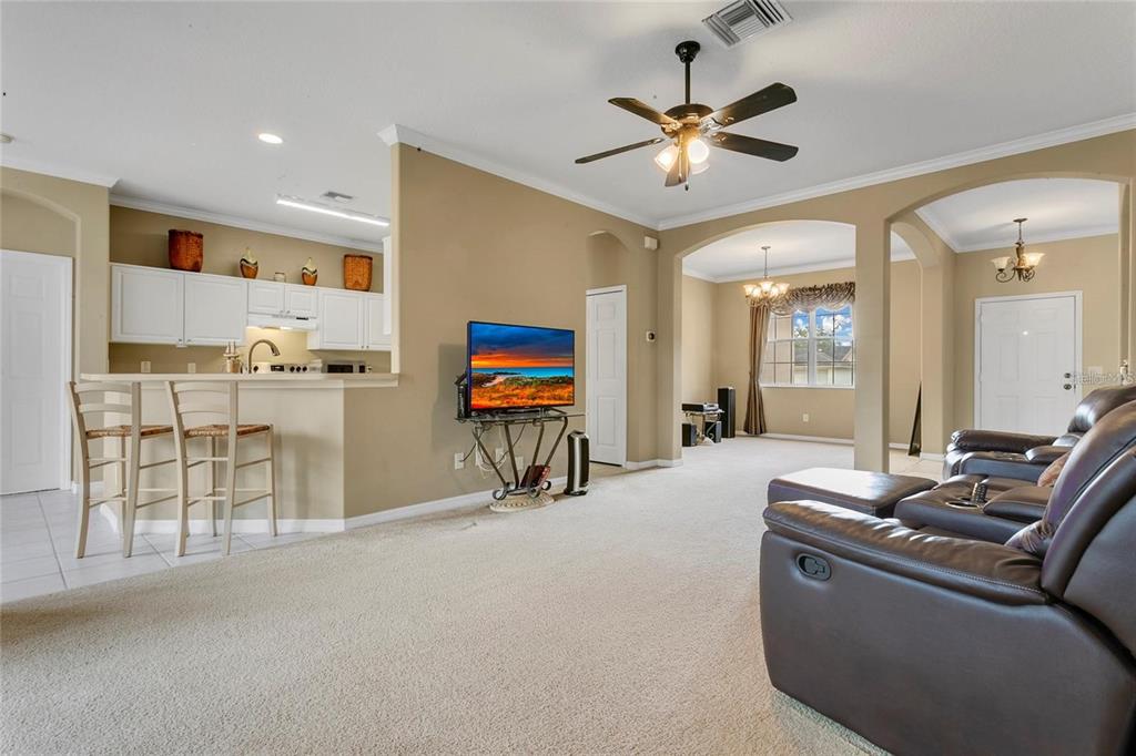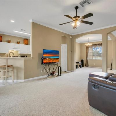 Ceiling Fan(s), Crown Molding, High Ceilings, Open Floorplan, Other, Split Bedroom, Thermostat, Walk-In Closet(s)