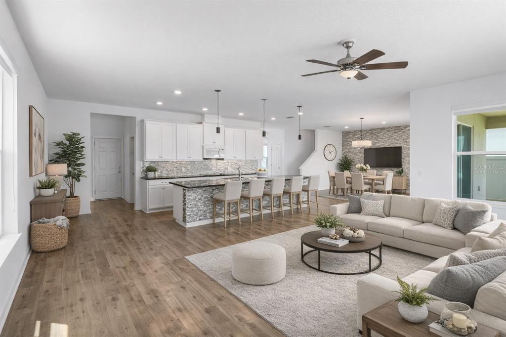 Kitchen/Family Room Combo, Living Room/Dining Room Combo, Open Floorplan, PrimaryBedroom Upstairs, Stone Counters, Thermostat, Walk-In Closet(s), Window Treatments