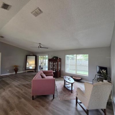 Ceiling Fan(s), High Ceilings, Living Room/Dining Room Combo, Open Floorplan, Solid Surface Counters, Split Bedroom, Walk-In Closet(s)