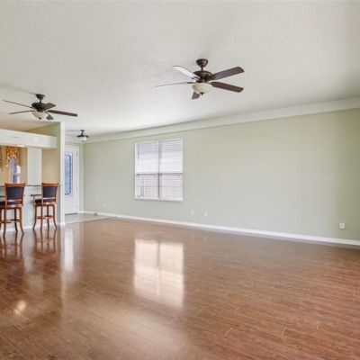 Ceiling Fan(s), Chair Rail, Eating Space In Kitchen, High Ceilings, Living Room/Dining Room Combo, Open Floorplan, Solid Wood Cabinets, Stone Counters, Thermostat, Walk-In Closet(s), Window Treatments