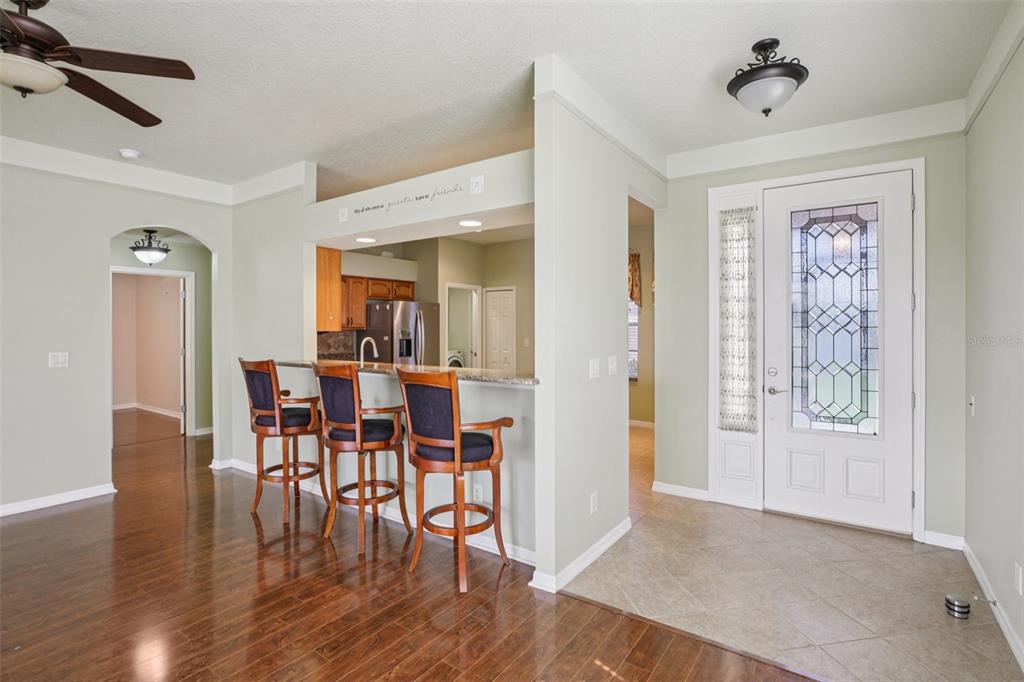 Ceiling Fan(s), Chair Rail, Eating Space In Kitchen, High Ceilings, Living Room/Dining Room Combo, Open Floorplan, Solid Wood Cabinets, Stone Counters, Thermostat, Walk-In Closet(s), Window Treatments