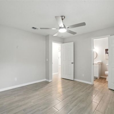 Ceiling Fan(s), High Ceilings, Living Room/Dining Room Combo, Open Floorplan, Primary Bedroom Main Floor, Solid Surface Counters, Solid Wood Cabinets, Walk-In Closet(s)